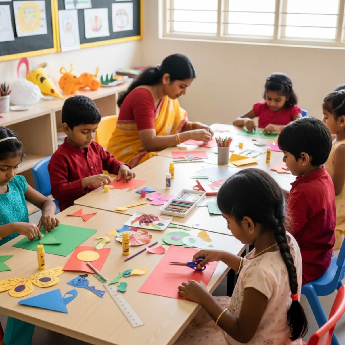 Our craft classes help children explore textures, colors, materials, and imagination through guided DIY projects. Every session encourages creativity, problem-solving, and confidence-building. With safe, non-toxic materials and experienced instructors, we ensure a fun and meaningful crafting experience for every child.