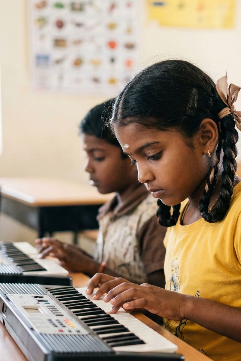 Keyboard is one of the best instruments for kids to start their musical journey. Our classes blend music theory + practical training, helping children learn: